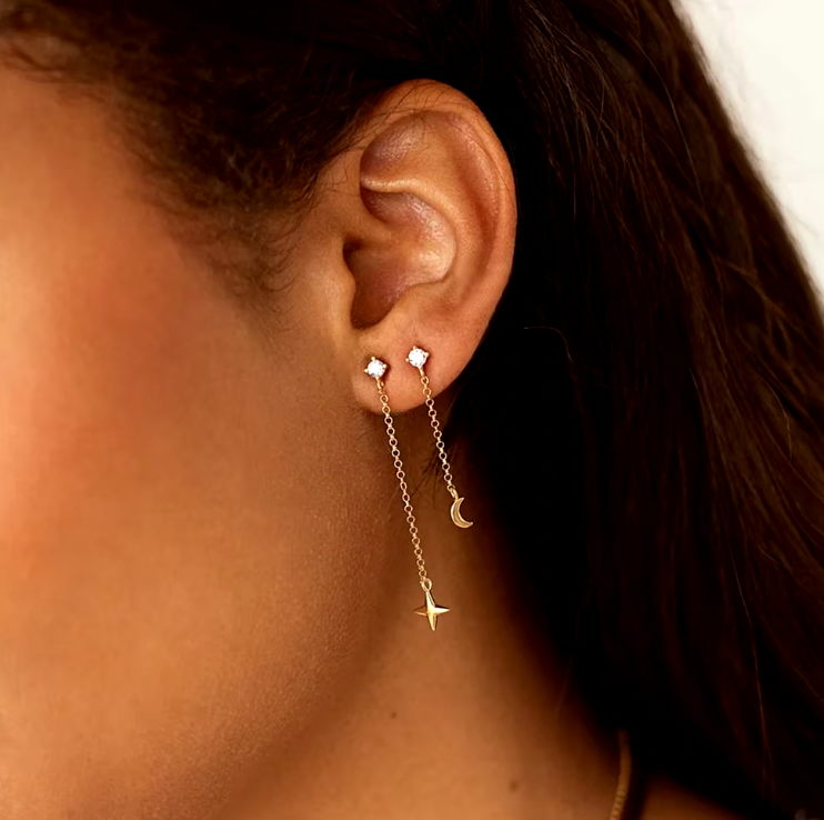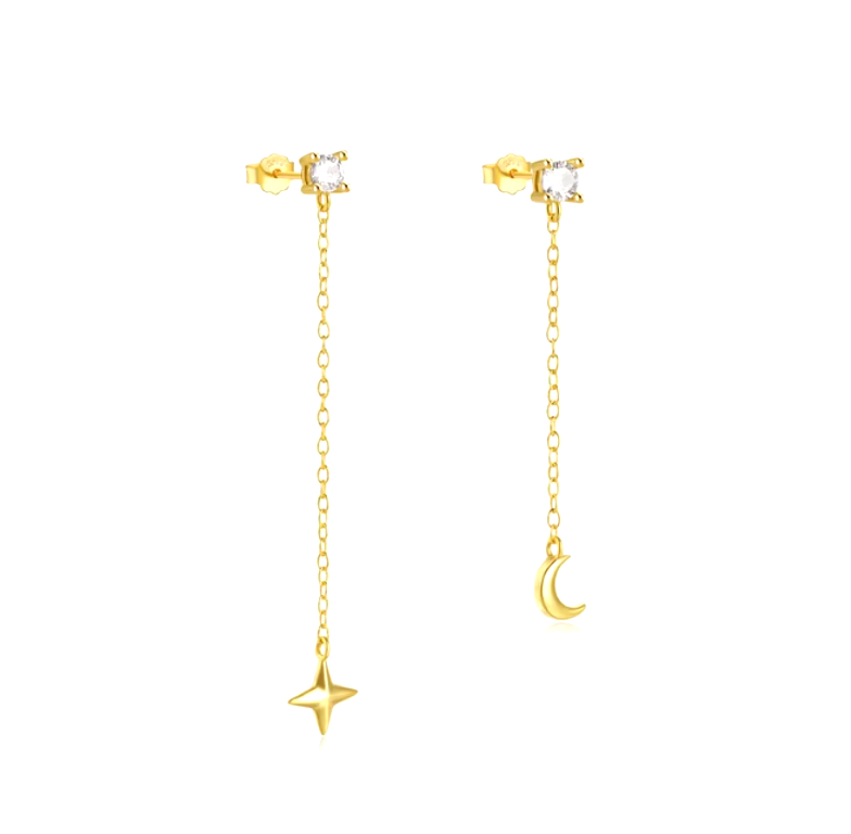 Circle Stone with Dangling Golden Moon Star Tassel Earring