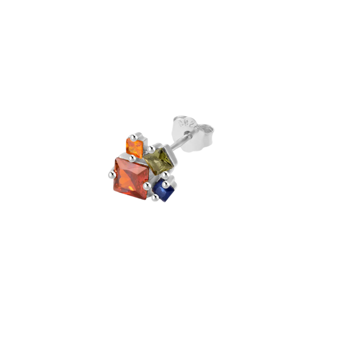 Red Square with Mini Triple Colorful Squares Stud Earring