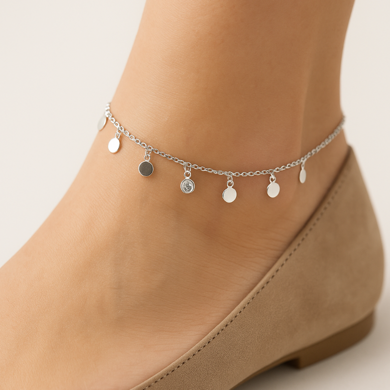 Dangling Circles and Stones Anklet