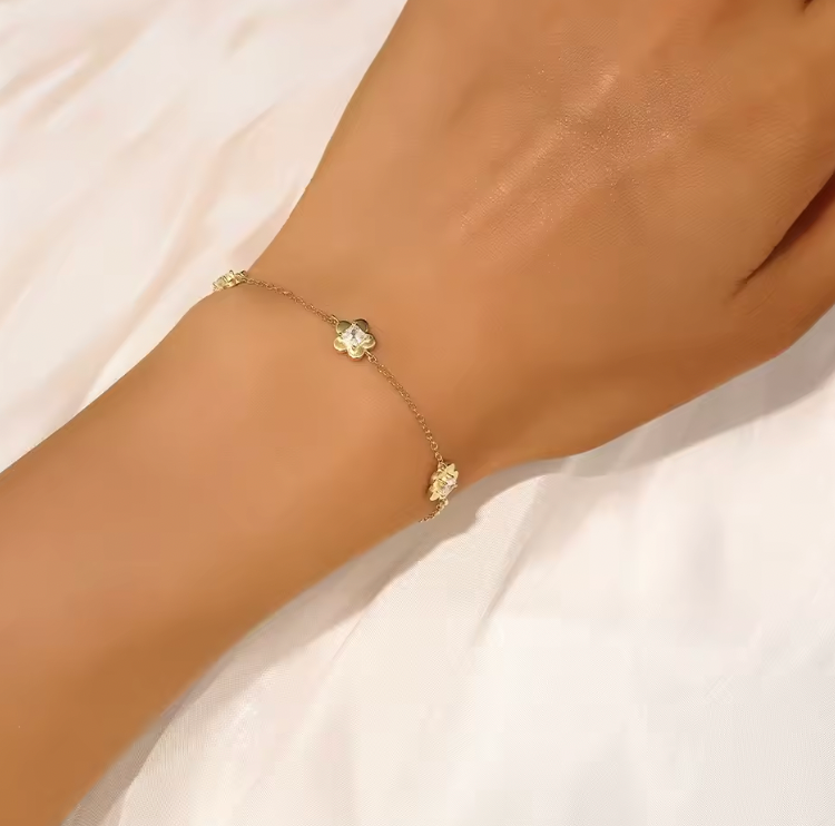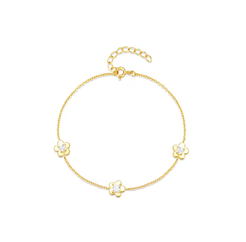 Triple Golden Crystal Flowers Bracelet
